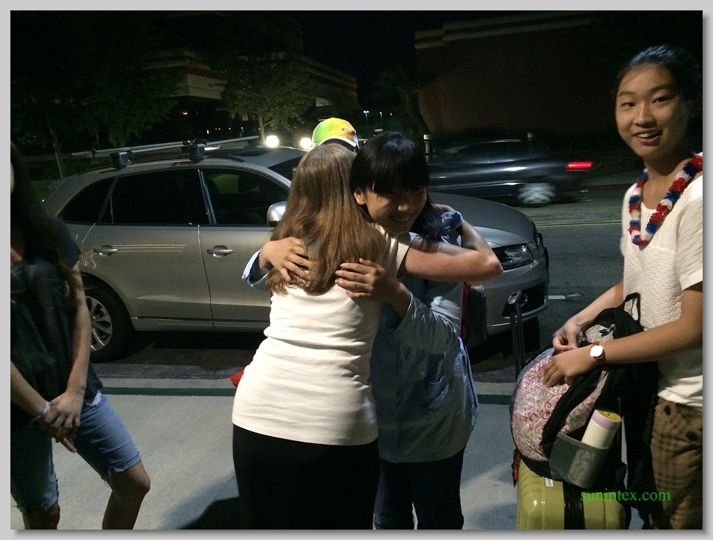 住宿家庭接上刚刚下飞机的学生们回家啦