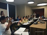 认真听着老师的演讲,脸上挂着幸福的微笑